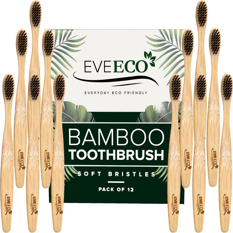 EveEco 12 Count I Bamboo Toothbrush I Soft Bristles Best for Sensitive Gums I Charcoal I Vegan I Natural Wood I BPA Fee I Recyclable I Compostable I Biodegradable | Environmentally Friendly