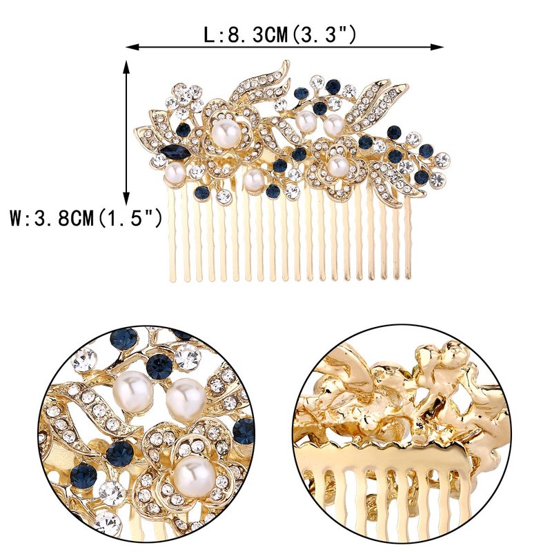 EVER FAITH Wedding Hair Comb Rhinestone Pearl Bridal Hair Accessories Flower Wedding Hair Piece for Bride Bridesmaids Blue Gold-Tone