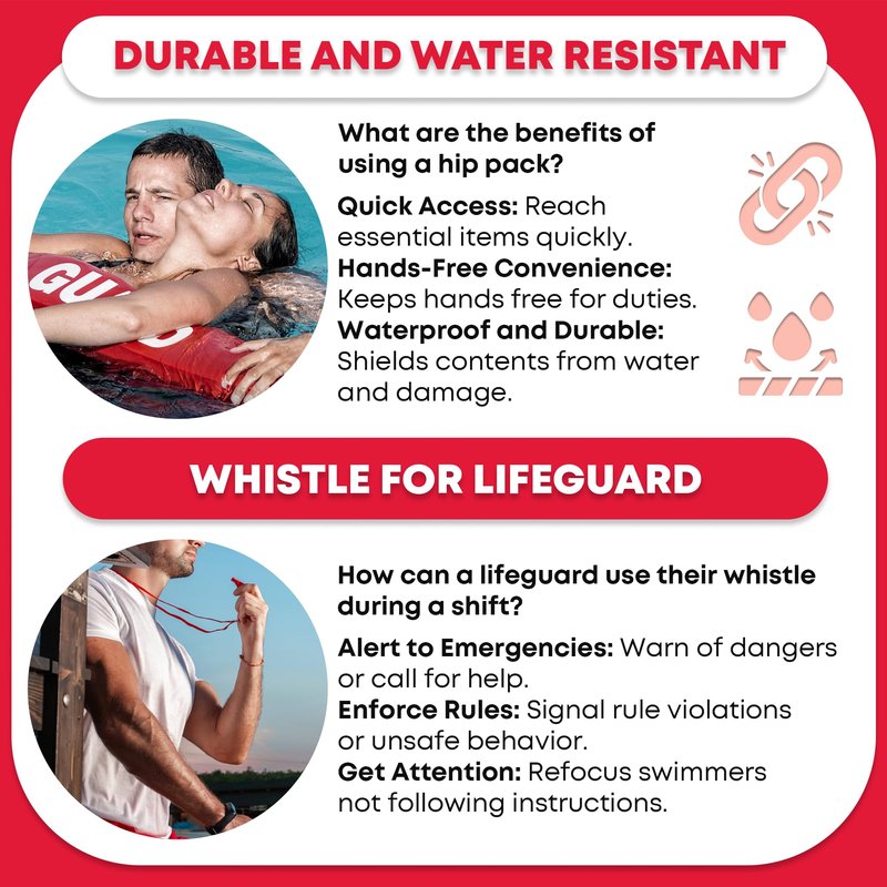 - BONUS WHISTLE - Included with this kit is a durable red whistle with a matching red lanyard. Alert swimmers or signal to other rescuers. A must have!