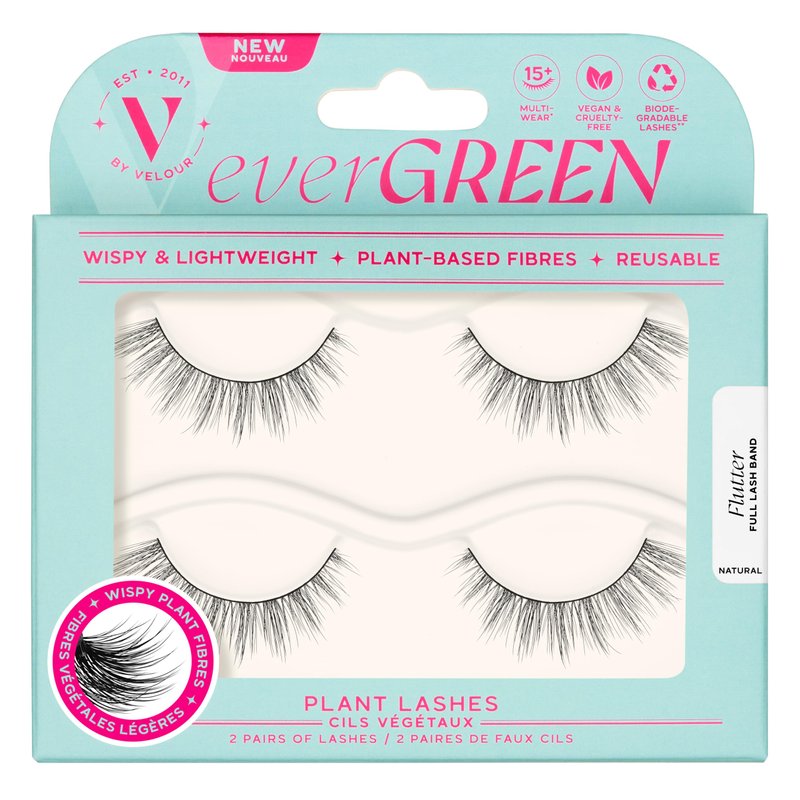 - Natural-Looking Cat Eye Lashes - everGREEN Flutter Iashes are comfortable, lightweight, natural-looking false lashes for everday wear. This flared false lash will create a cat-eye look, elongating the eyes.