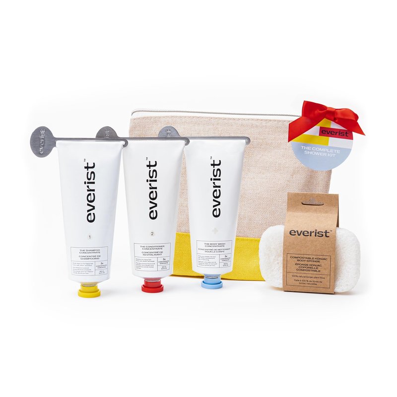 Everist The Complete Shower Kit - The Shampoo Concentrate, The Deep Conditioning Concentrate & The Body Wash Concentrate, The Compostable Konjac Sponge & Jute Travel Bag, 3.4 fl oz
