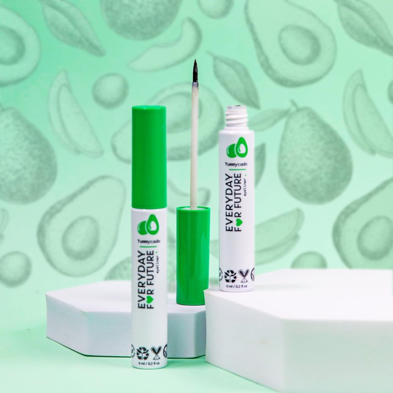 The perfect solution for those who want to achieve stunning, bold, and precise eye looks - Everyday For Future Avocado Eyeliner. Our eyeliner is specially formulated with organic Barley Water, Castor Oil, and Organic Avocado Oil – these beneficial ingredients nourish and moisturize the delicate skin around the eyes. Our eyeliner glides smoothly and evenly, allowing for precise application without smudging or fading. The brush facilitates the application, making it easy even for beginners to achieve the perfect look. Our delicate formula is made with 99% natural ingredients and fragrance free, ensuring that your eyes are protected from irritation or damage. Plus, it's vegan and cruelty-free, so you can enjoy the goodness of this Avocado Eyeliner guilt-free. And we don't stop there - our packaging is sustainable, made of 75% recycled materials, so you can feel good about your purchase knowing that you're making a positive impact on the environment.