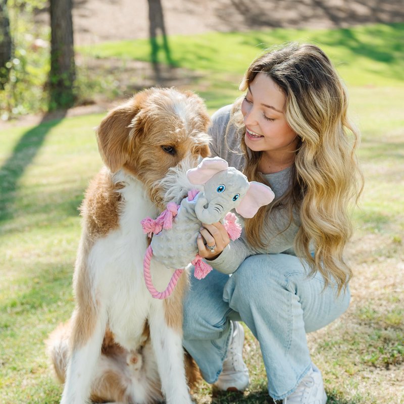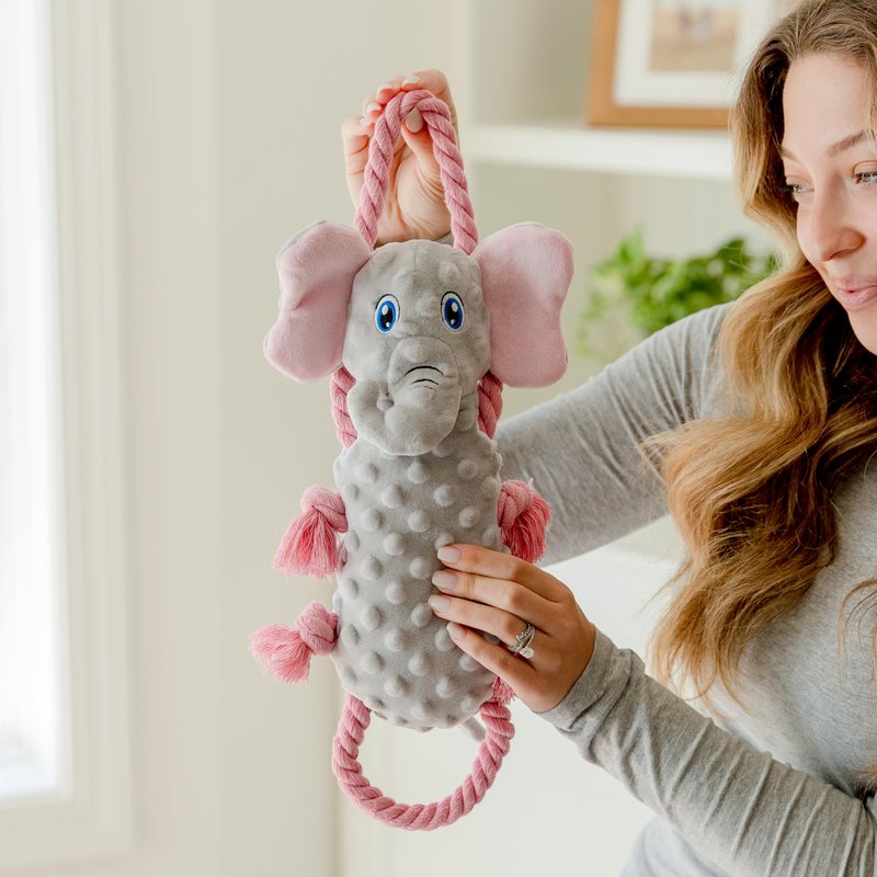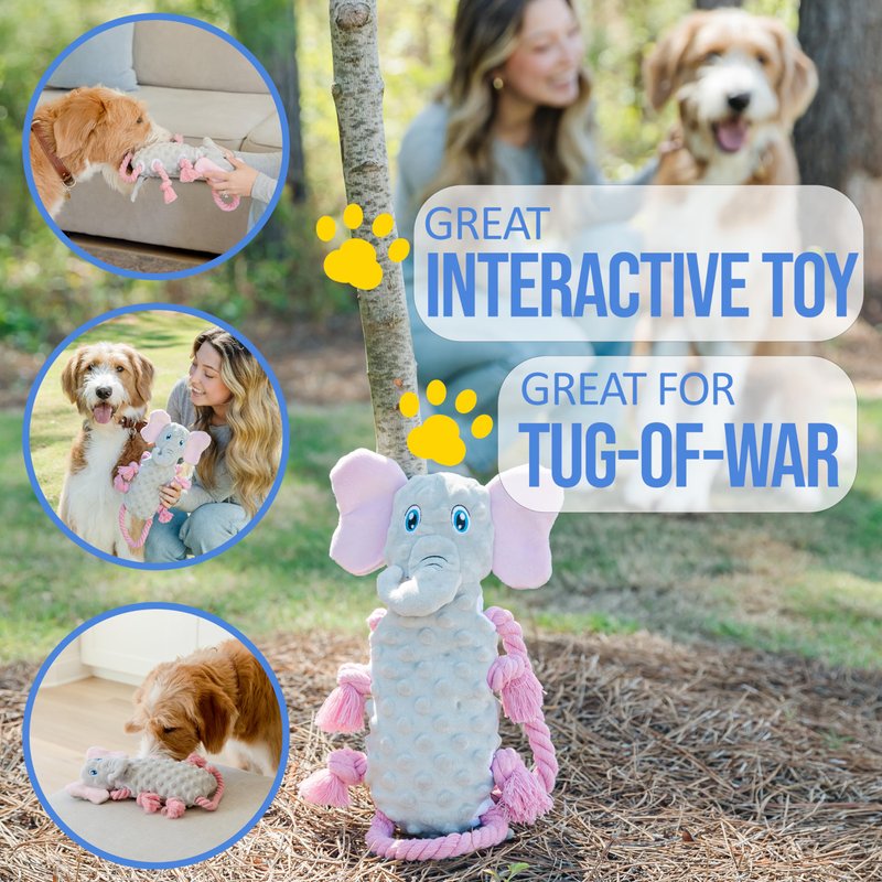 everyday joy Squeaky Dog Stuffed Animals Chew Toy - Crinkle Paper Tug of War Rope Plush Dog Toy - Soft Tough Squeaker Dog Entertainment Toys for Home Alone - Fun Boredom Busters for Dogs - Elephant