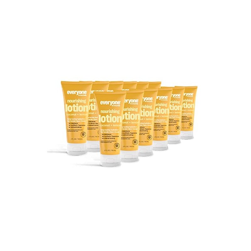 Everyone Nourishing Hand and Body Lotion, Travel Size, 2 Ounce (Pack of 12), Coconut and Lemon, Plant-Based Lotion with Pure Essential Oils, Coconut Oil, Aloe Vera and Vitamin E