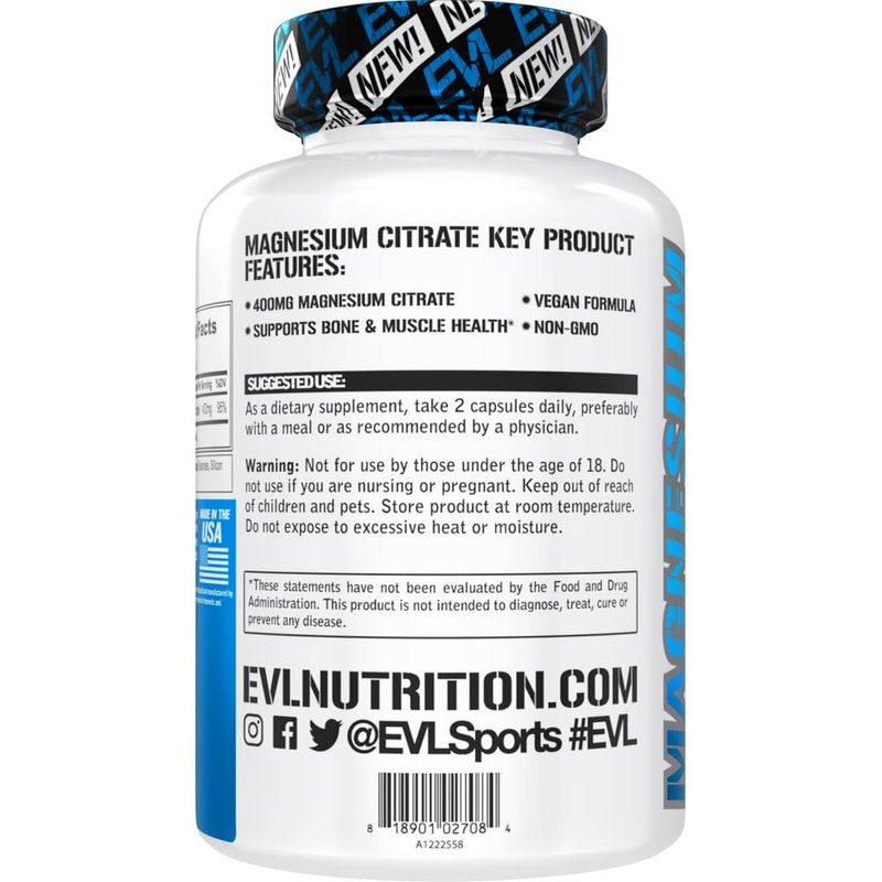 EVL Magnesium Citrate Capsules 400mg - Muscle and Bone Health Magnesium Supplement with Pure Magnesium Citrate for Muscle Relaxation and Bone Strength - 60 Veggie Magnesium Capsules for Health
