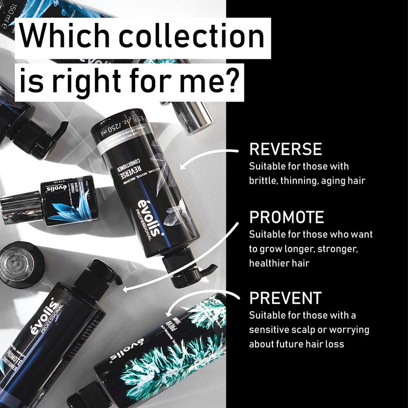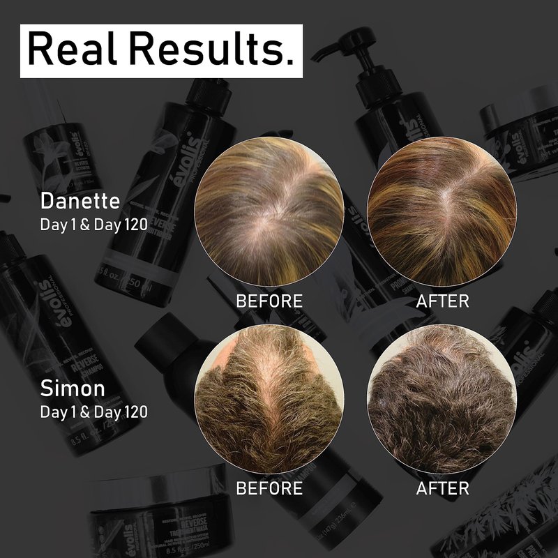 - RESULTS IN 90 DAYS: Based on a consumer usage study, users found that REVERSE conditioner transformed texture and overall hair quality within 90 days. This conditioner is part of the évolis REVERSE hair strengthening products line of sulfate and paraben free shampoo and conditioner protein treatment for thinning hair.
