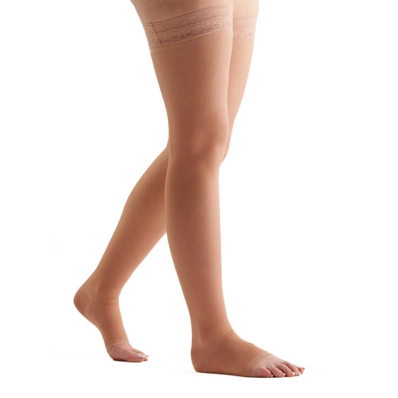 - COMPRESSION STOCKINGS FOR PAIN RELIEF: This thigh high garment has true graduated compression for firm pressure where your body needs it most. The 20-30 mmHg graduated compression massages and energizes tired, achy legs and sore muscles.