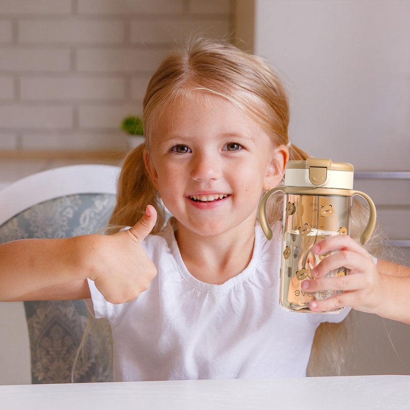 Evorie Tritan Toddler Sippy Cup with Silicone Straw, Spill-Proof Straw Water Bottle for Kids 1-4 Years Old, 10 oz, Removable Handles, Ideal for School