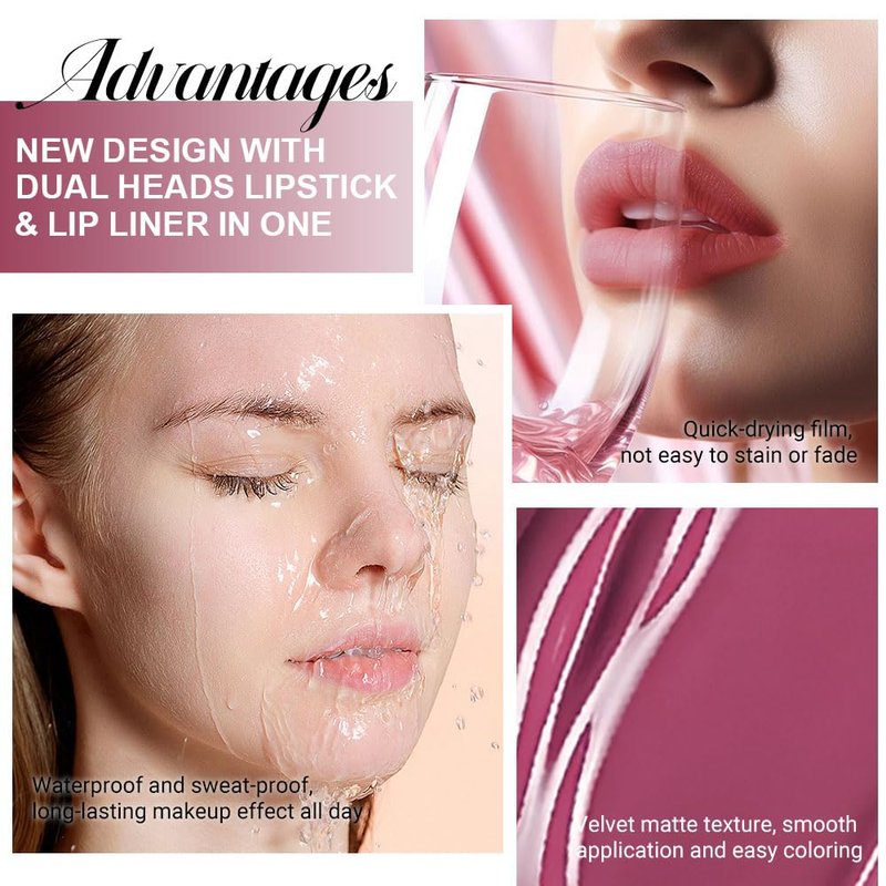 - 【2 IN 1 Lip Liner & Liquid Lipstick】The double ended design made you can use lipstick and lip liner on both ends. New design with dual heads lipstick & lip liner in one, for draw delicate lip line before applying lipstick. It combines lip line and liquid lipstick and makes double-end lipstick more perfect,meets the need of all occasions.