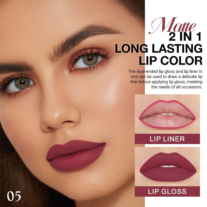 - 【2 IN 1 Lip Liner & Liquid Lipstick】The double ended design made you can use lipstick and lip liner on both ends. New design with dual heads lipstick & lip liner in one, for draw delicate lip line before applying lipstick. It combines lip line and liquid lipstick and makes double-end lipstick more perfect,meets the need of all occasions.