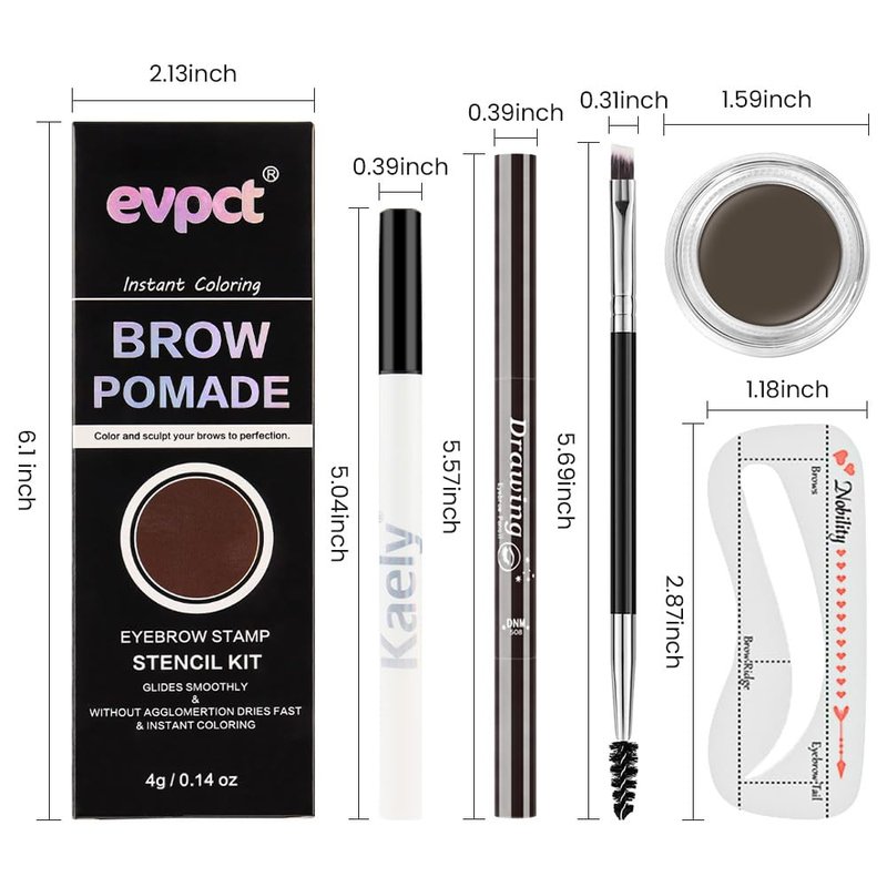 evpct Eyebrow Stamp Pencil Kit for Eyebrows, Makeup Brow Stamp Trio Kit with Waterproof Eyebrow Pencil, Eyeliner, Eyebrow Pomade, 10 Eyebrow Stencils and Dual-ended Eyebrow Brush, Kit-06# MEDIUM BROWN