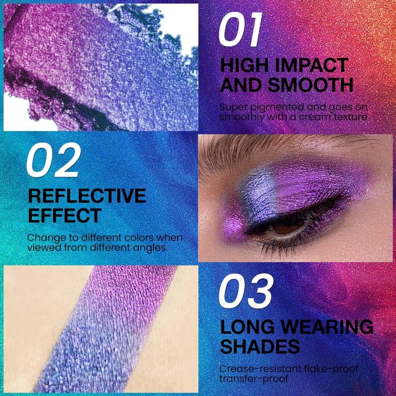 - 【Party Spotlight】The chameleon eyeshadow is typically the result of light-reflective particles incorporated into the product. These particles catch the light, causing the eyeshadow to sparkle or gleam, adding depth and dimension to the eyes. This eyeshadow make-up works wonderfully to highlight and draw attention to the eyes, enhancing your natural beauty.