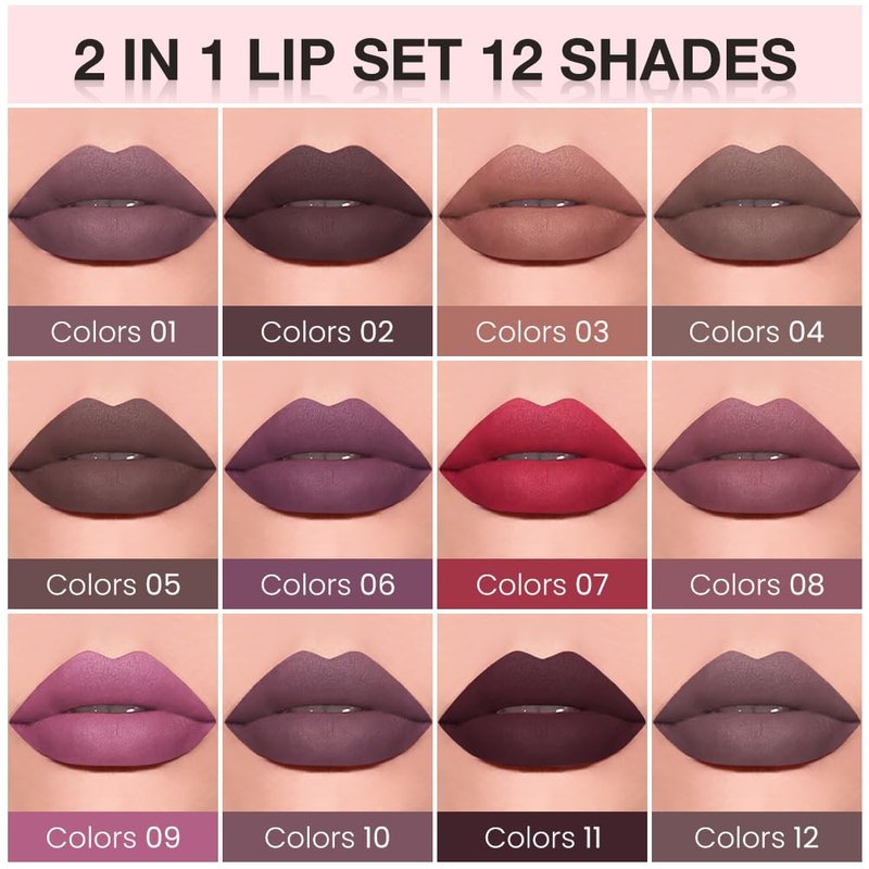 Unleash your inner makeup artist with this versatile lip set. The retractable lip liner pencil allows for precise sculpting and shaping of your lips, while the creamy lip gloss adds a luscious pop of color and shine. With 12 captivating shades ranging from bold reds to sultry browns, you can effortlessly create any look from subtle and natural to bold and daring. The long-lasting, smudge-proof formula ensures your pout remains flawless all day long. Achieve perfectly defined and hydrated lips with this must-have duo. Indulge in a luxurious lip experience and let your lips do the talking.