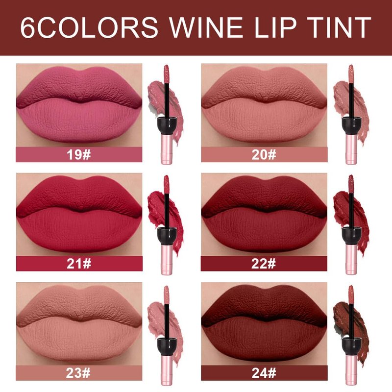 evpct Wine Lip Tint Stain 6 colors Set Long Lasting Waterproof, Mauve Light rosey nude Ruby red Dark red Light pink beige Red brown 6 Wine Bottles Shades Colored Lip Tint Stain Liquid Lipstick Set 04