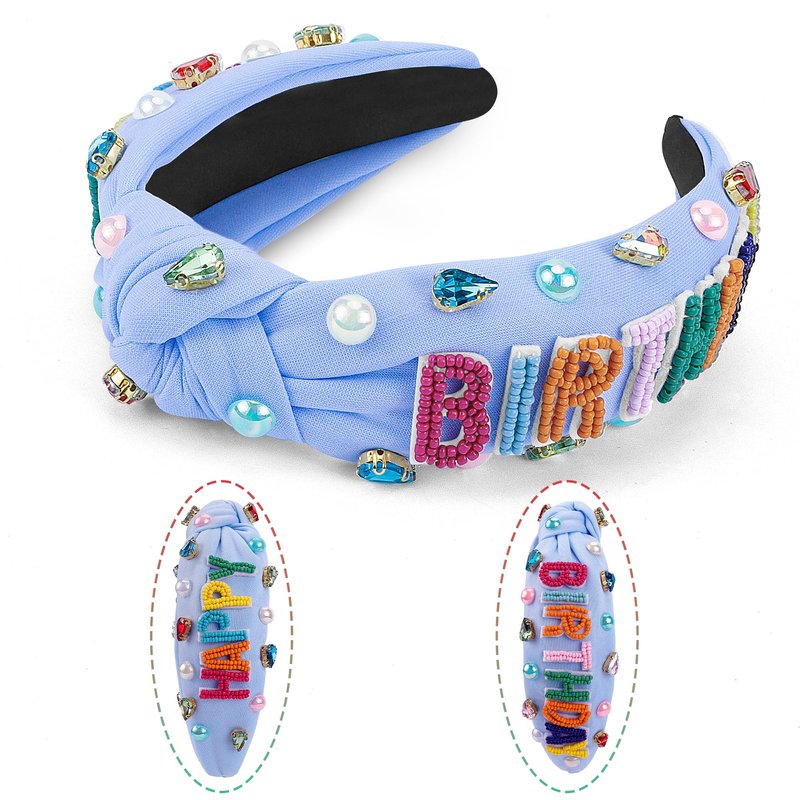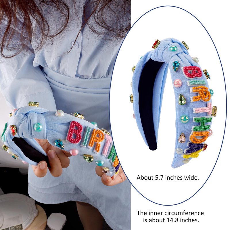 - 1.Elegant Blue Birthday Headband for Her: This exquisite headband comes in a vibrant shade of blue, perfectly accentuating any outfit for a special occasion, making it the ideal accessory for a lady's birthday celebration.