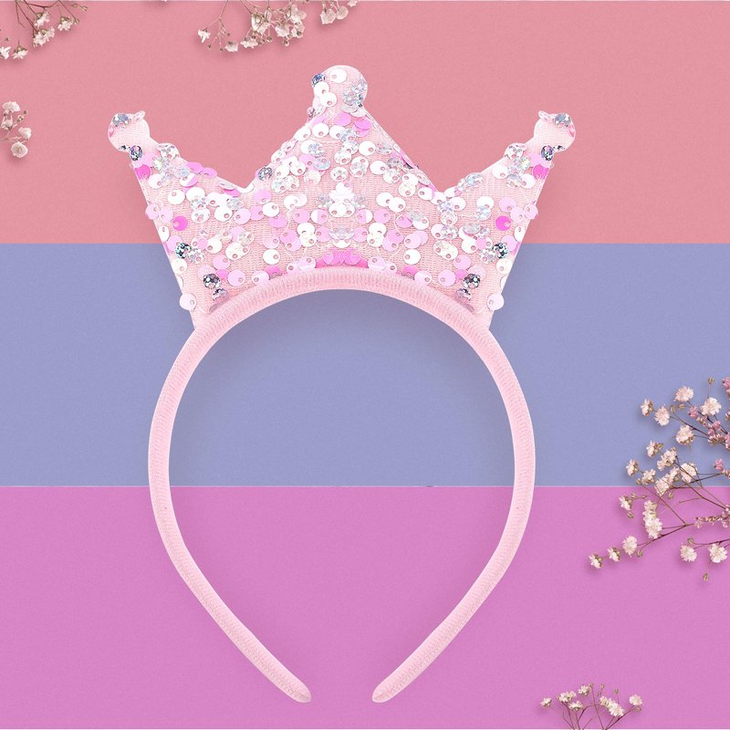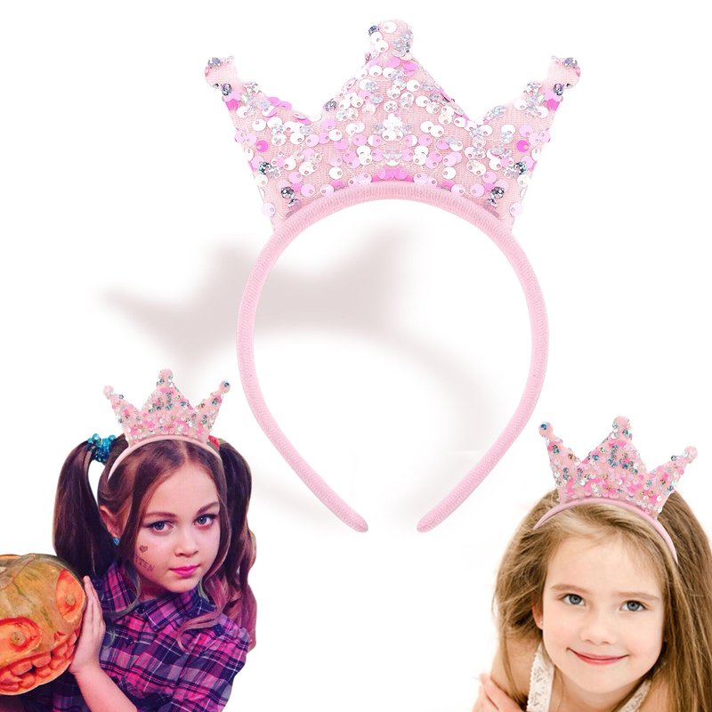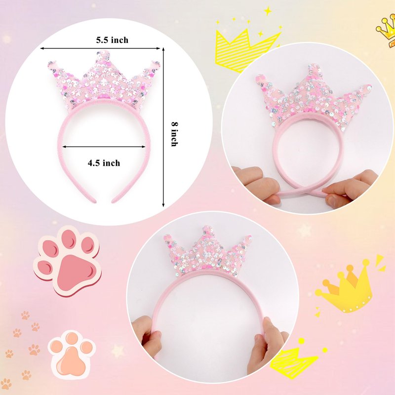 Exacoo Princess Birthday Party Decorations Headbands for Women Hair Accessories for Girls Pink Birthday Crown Tiaras for Women Christmas Halloween Decorations Girls Headbands Sequin Glitters