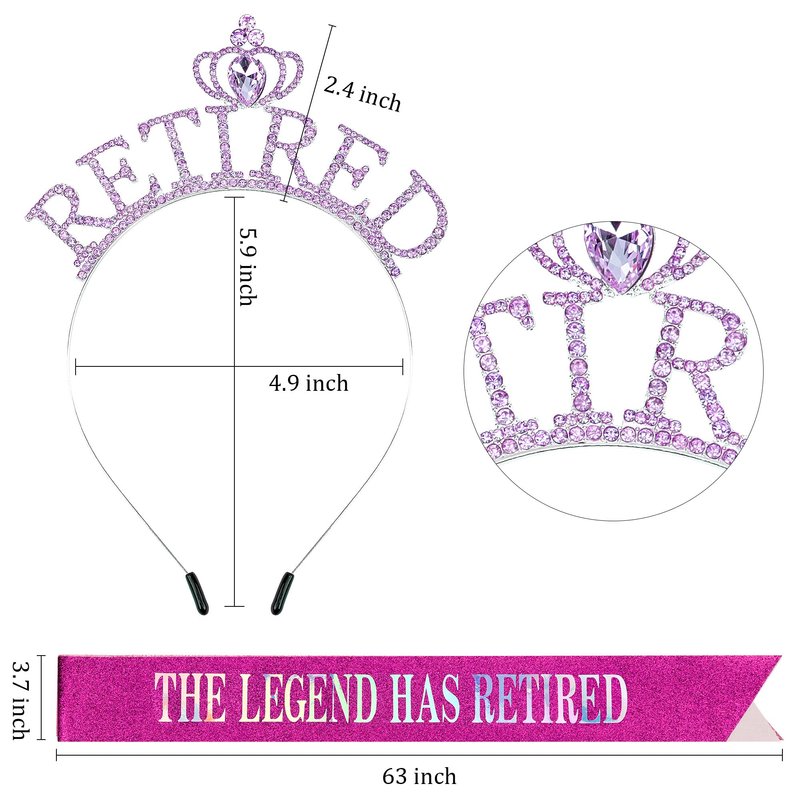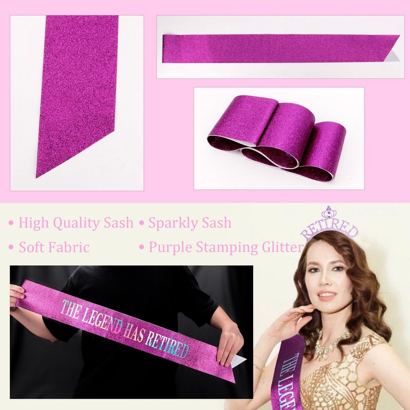 Exacoo Retirement Gift for Woman Purple Retirement Sash And Cown Headband Retirement Party Decorations The Legend Has Retired Sash Elegant Cute Rhinestone Headband
