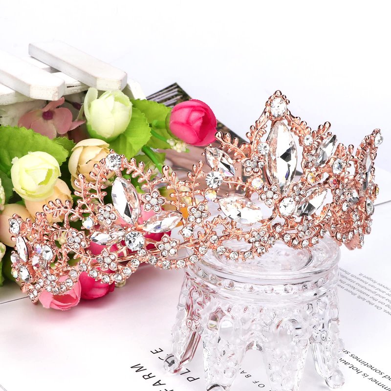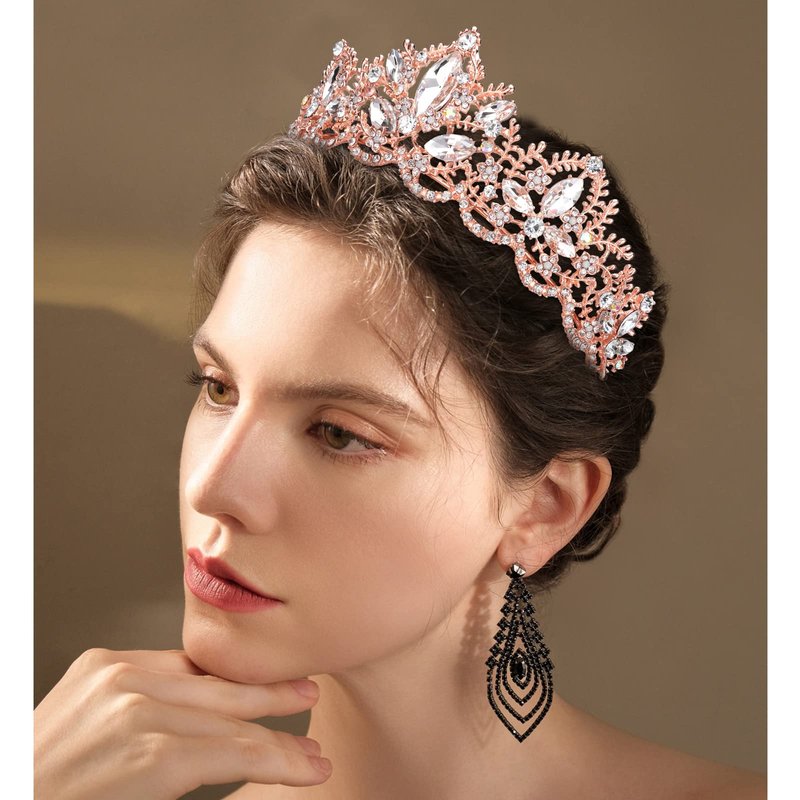- ♔ Material: Made of high quality clear crystals in Rose Gold-plated metal setting, eco-friendly,Alloy is with diamond look and hard texture for practicality and aesthetics.
