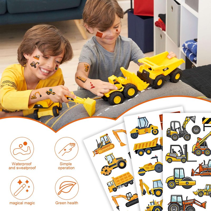 - Material:The construction truck tattoo sticker is made of high-quality paper and covered with film, which is not easy to fade, durable and waterproof.Come with various animal elements,let you have fun and celebrate this great mood with friends together!