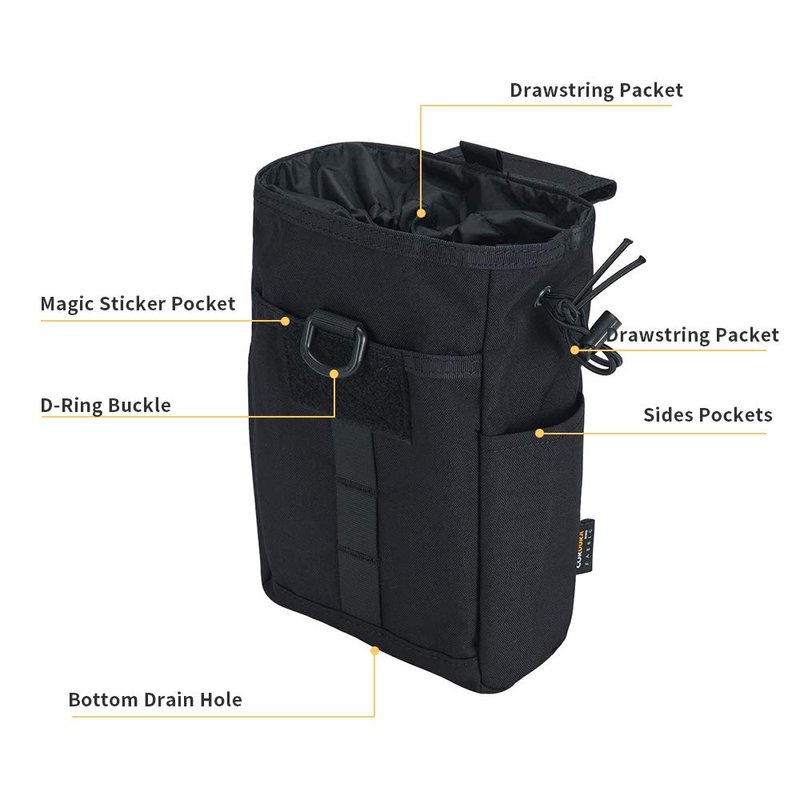 EXCELLENT ELITE SPANKER Molle Dump Pouch Drawstring Magazine Utility Pouch Folding Dump Pouch Waist Bag(Black)