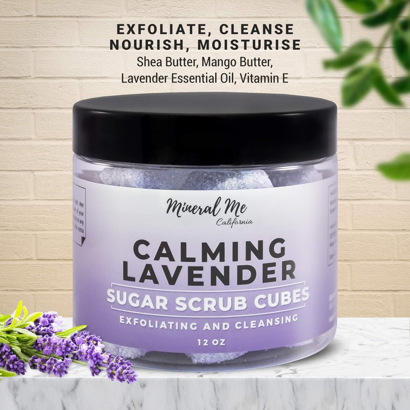 Exfoliating Body Scrub - 12oz LAVENDER Sugar scrub cubes w/Mango Butter & Shea butter- Ultra Hydrating & Moisturizing - Natural & Organic for all body exfoliation-For hands, arms legs, elbow & foot