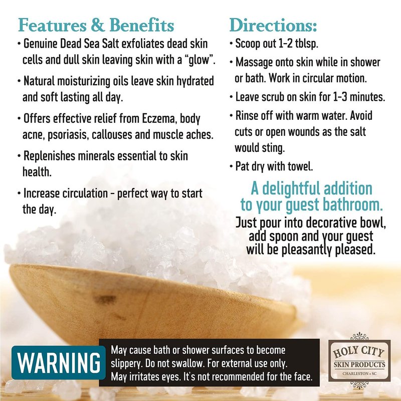 - VISIT THE HOLY CITY STORE - Check out our storefront to discover additional body products and gift baskets. We recommend our best-stelling Dead Sea Salt Body Scrub made with pure Dead Sea mineral salt and essential oils.