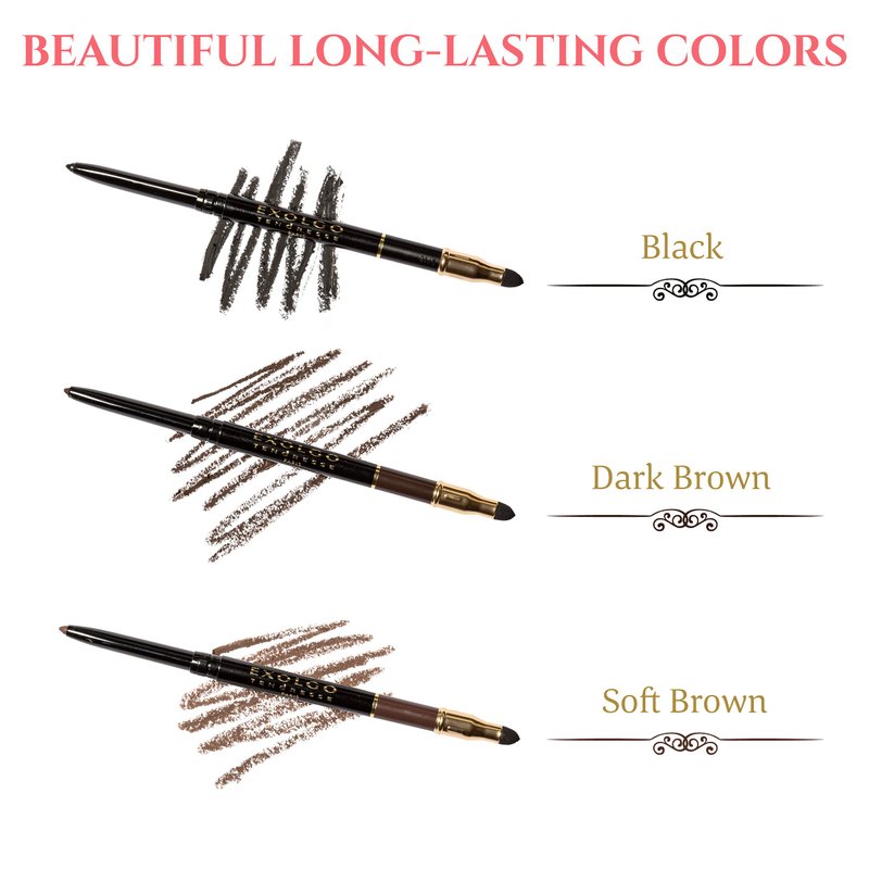 - BEAUTIFUL LONG-LASTING COLORS: Choose from 3 shades (Black, Dark Brown and Soft Brown). Each shade is designed to last up to 10 hours. Our special manufacturing techniques allow a higher concentration of pigment, so the colors are much richer.