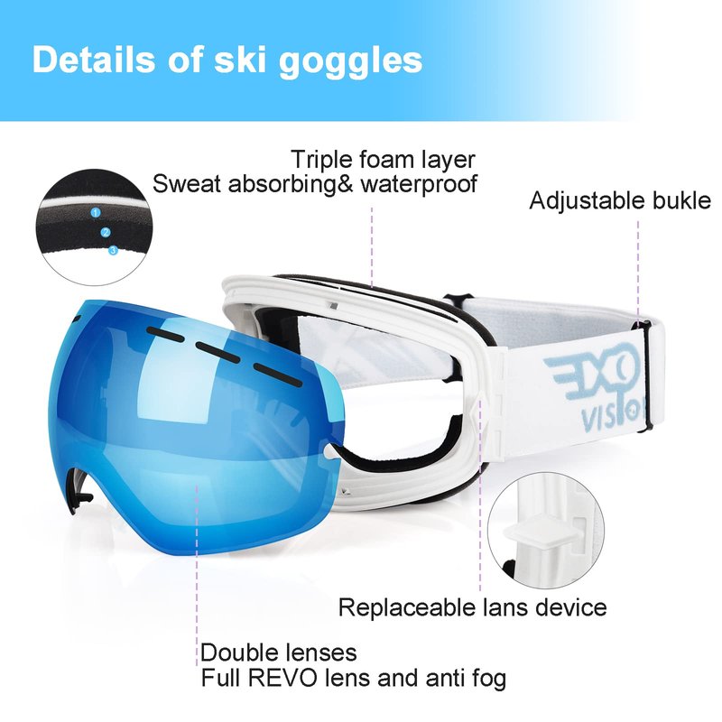 - OTG Ski Goggles: The OVER GLASSES SKI GOGGLES are also friendly to the myopia skiing or snowboarding players. The Three layer foam to keep warm and sweat absorbing. Enjoying the winter sports with EXPVISION Goggles.