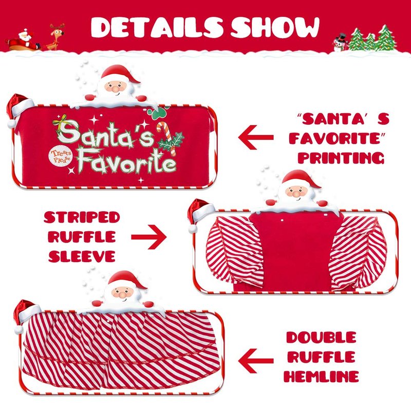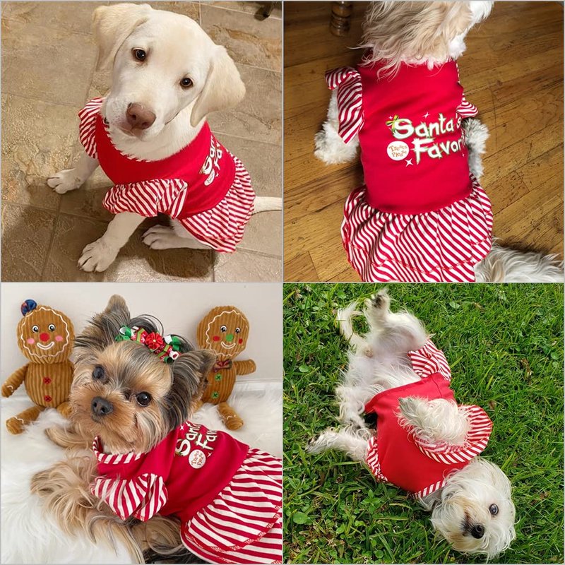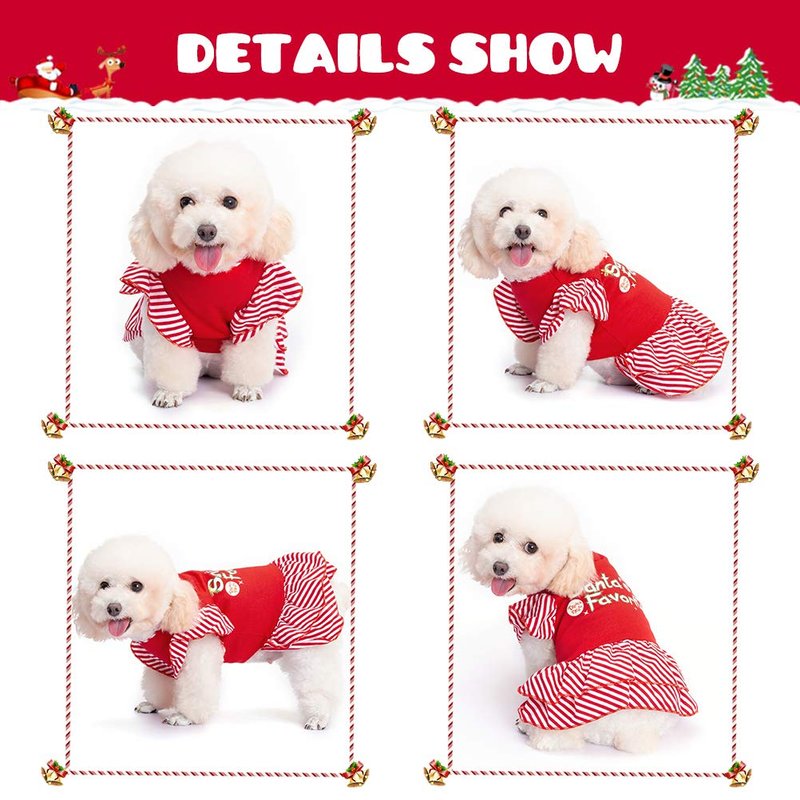 - CUTE APPEARANCE: Overall Christmas red color, featuring red striped ruffled hem and short sleeve design, and printed with the words "Santa's Favorite", making your pet look more attractive.