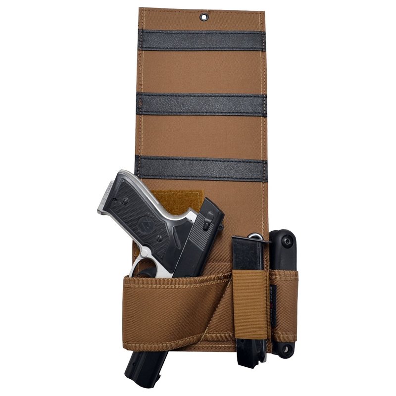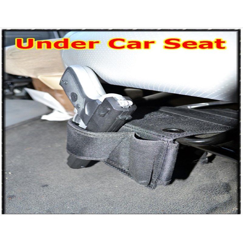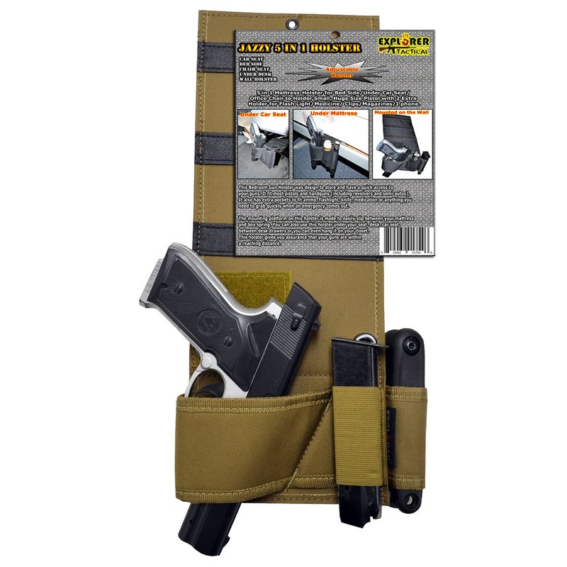 Explorer Adjustable Under Mattress Bedside Pistol Holster Car Seat Desk Closet Gun Handgun Holster with Flashlight Loop Magazine Holder (Coyote Tan Bed Holster)