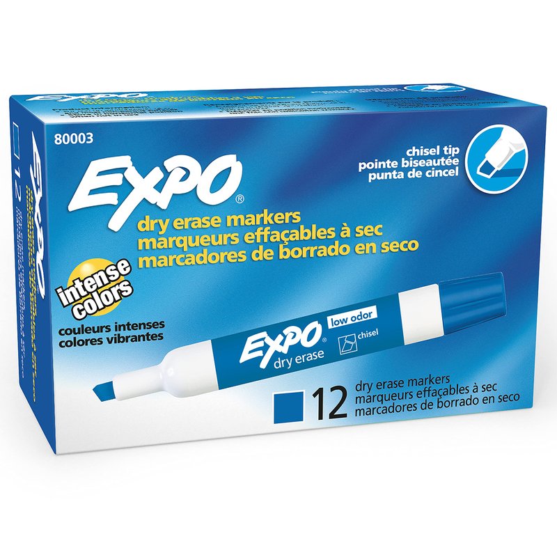 EXPO Low Odor Dry Erase Markers, Chisel Tip, Blue, 12 Count