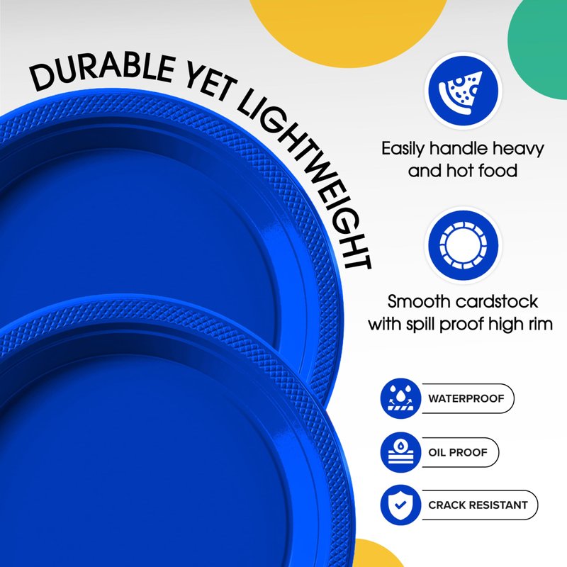 - 【 Health & Safety 】Our dark blue plastic plate set is made with food safe materials, ensuring the health and safety of your guests. Whether it's for a birthday party or a picnic, you can trust that these disposable plastic plates meet the highest standards of hygiene, providing peace of mind for you and your loved ones.