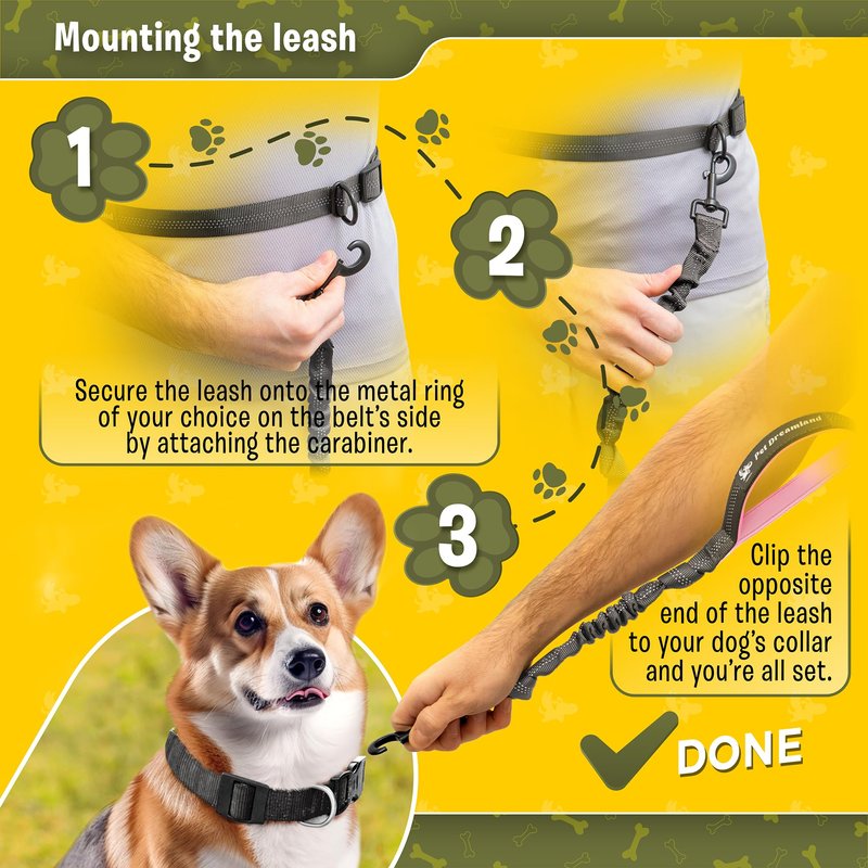 - 💆♀️ Ergonomic and Stylish! The dog leash waist belt is adjustable and fits comfortably around your waist, making it easy to walk with style..
