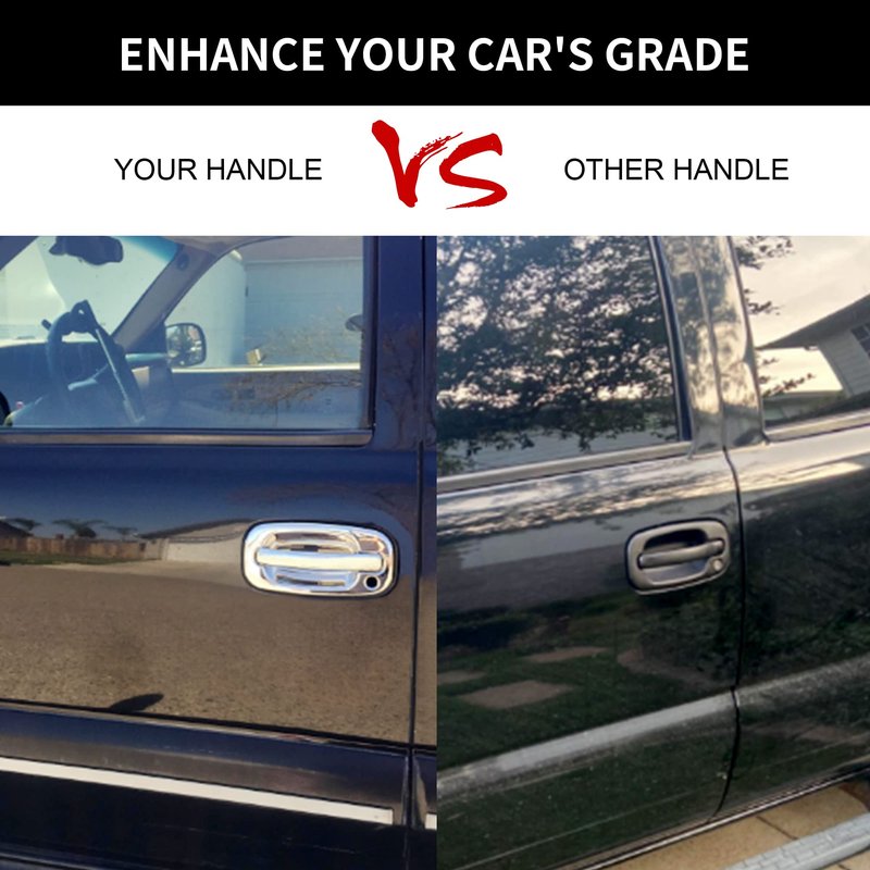 - 【Upgrade Chrome Plating】Our chrome left and right door handles are manufactured from upgrade chrome plating process, effectively improve gloss by 80%, not easily oxidized, surface does not leave scratches easily, long-lasting service life.