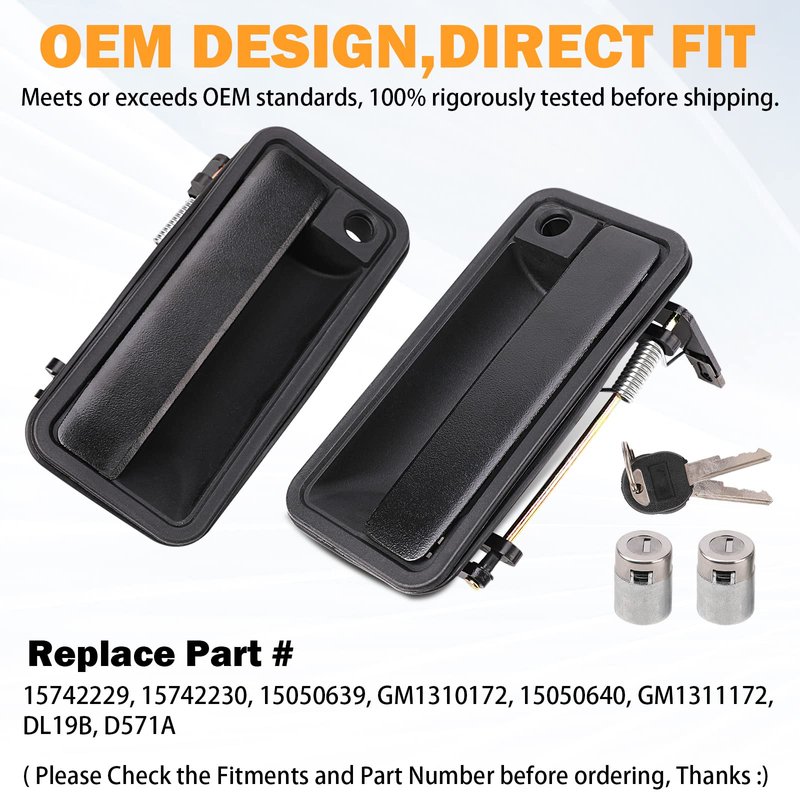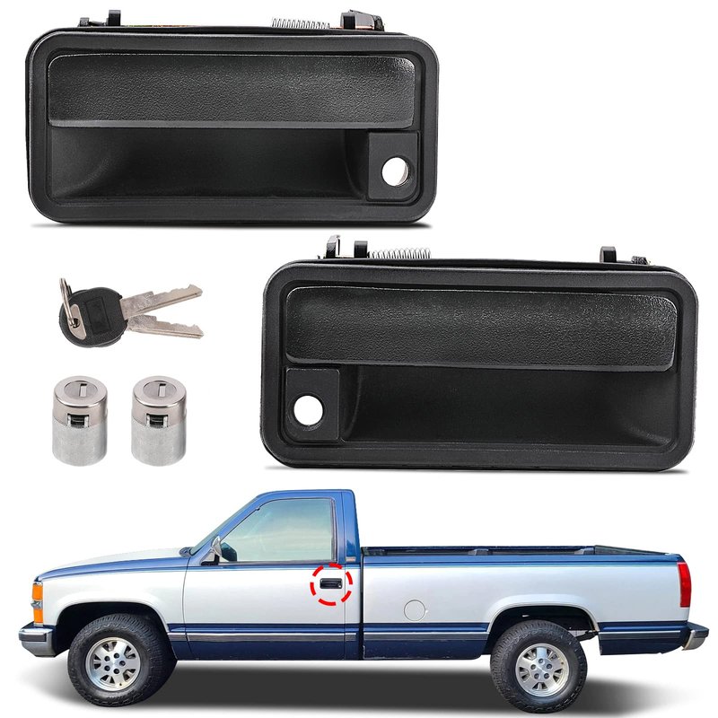 - REPLACEMENT EXTERIOR DOOR HANDLES WITH LOCKS - Help to restore the GMC or Chevy Pickups's front left driver side & right passenger side outside door handles to proper operation. No more sticking and failure to lock or unlock of the front side doors. Order a new pair of 15742229 15742230 exterior door handles with locks from Yinlowa, Irritating Fit problem -- the front side door refusing to open is now history.