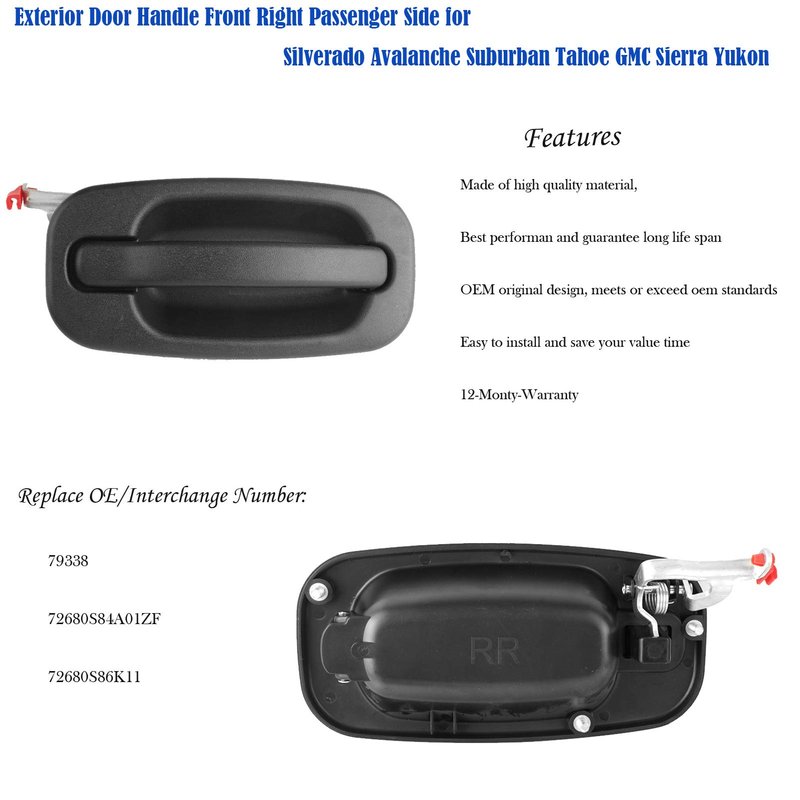 - Front exterior outside door handle right passenger side fits for Chevy Avalanche Silverado Suburban Tahoe 1500 2500 3500 1999 2000 2001 2002 2003 2004 2005 2006 2007, Compatible with GMC Sierra Yukon 1500 2500 3500 01 02 03 04 05 06