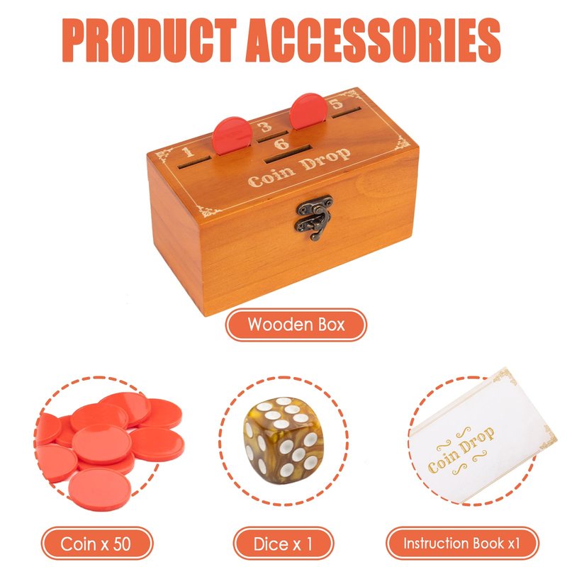 - 【CLASSIC BOARD GAME】:The coin drop game set includes 50 coins,1 game box, 1 dice and 1 game instruction book.