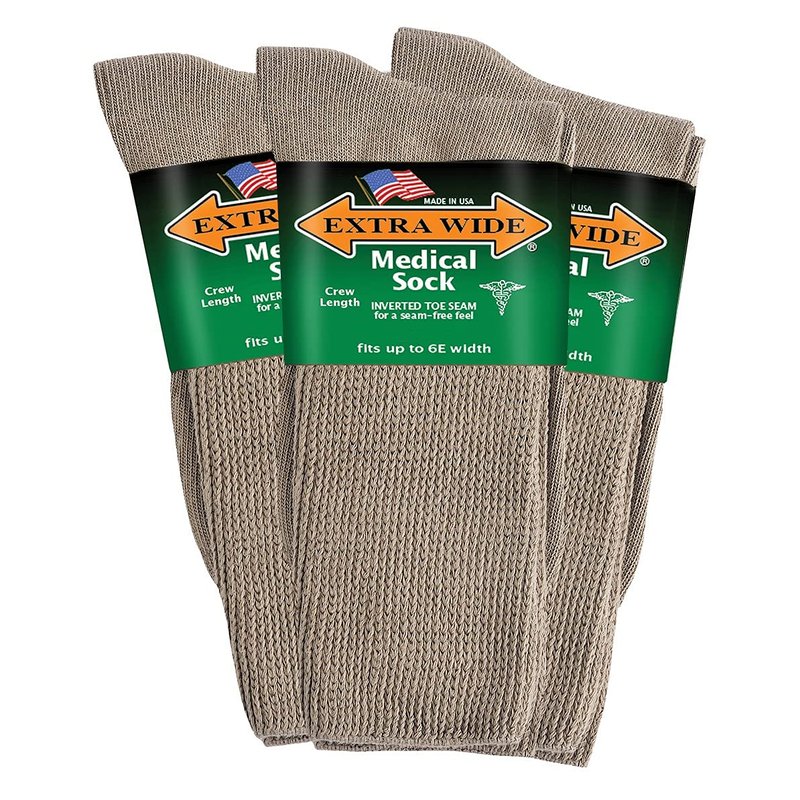 Extra Wide Medical Mid Calf Crew (Pack of 3), Diabetic Socks, Made in USA, for Men and Women (Medium, Tan)