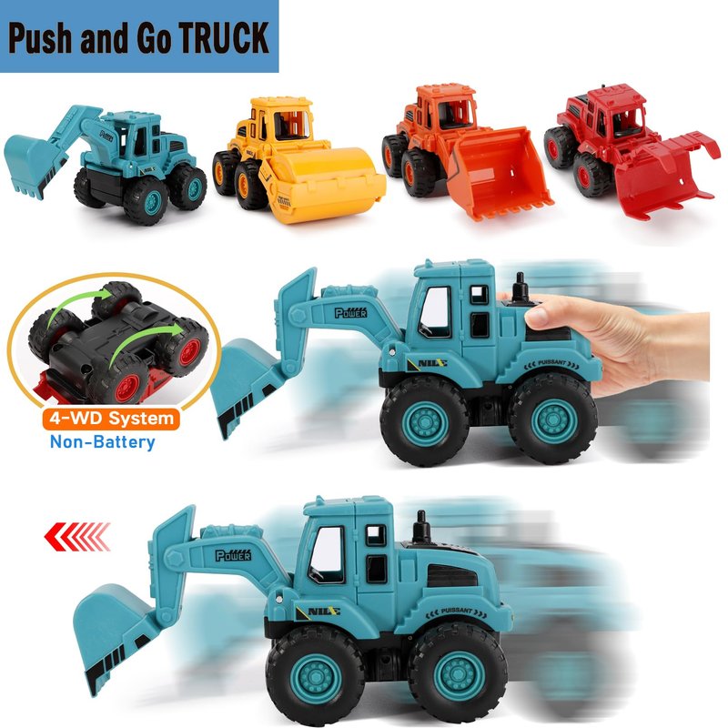 - Friction-Powered Construction Vehicle Toys: Our construction vehicle toys operate with friction power, requiring no batteries, just a gentle push to make them go far. These push-and-go friction-powered vehicles capture kids' attention and spark their imagination.