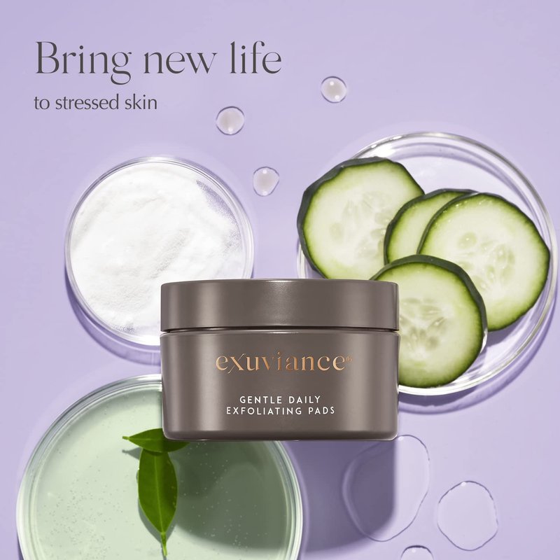 EXUVIANCE Gentle Daily Exfoliating Face Pads with PHA, Vitamin C and E Antioxidants, Green Tea and Cucumber Extracts, 60 pads
