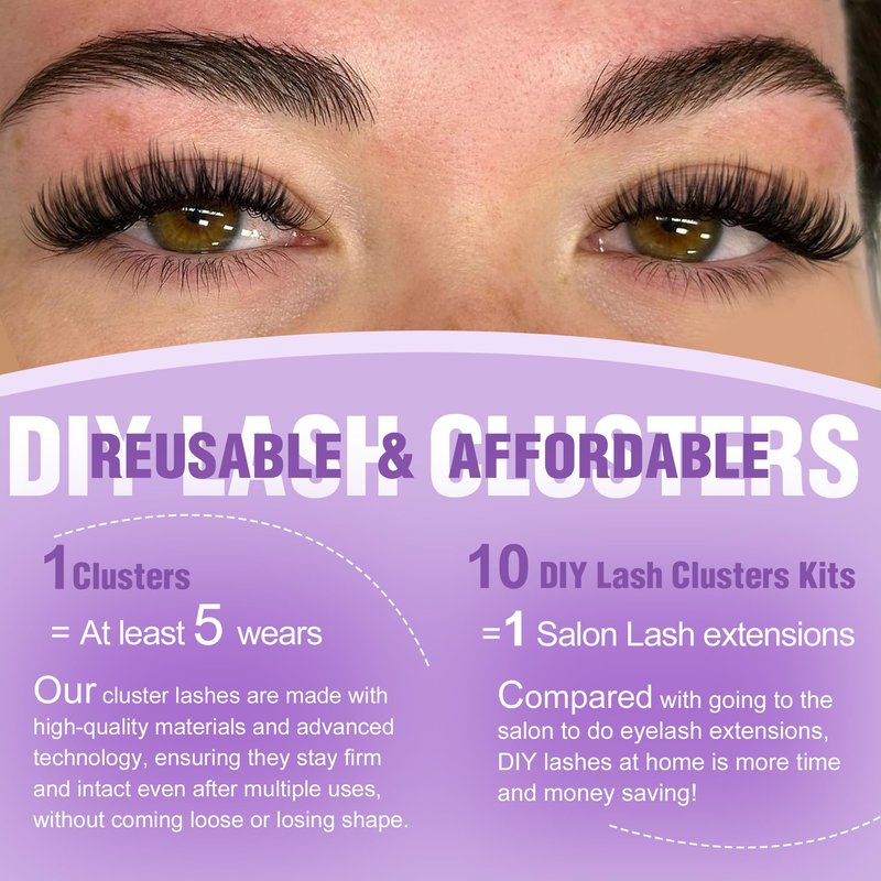 - Soft, Lightweight & Comfortable DIY Lash Extensions: Our cluster eyelash extensions are a remarkable choice for those seeking both beauty and comfort; They are made from good materials that are incredibly soft, ensuring a gentle touch against your eyelids; These lash extensions are perfect for long hours of wear, allowing you to go about your day with ease