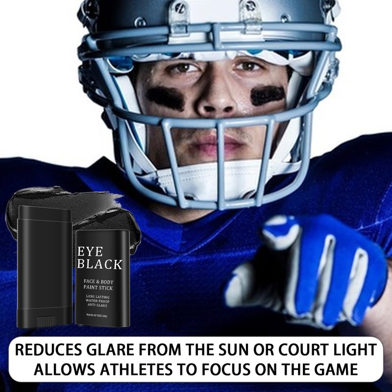 - Eye Black Stick - A super fun face painting for baseball softball sports and Cosplay paint. It smears smooth, easy to color and stay on well to provide the high pigment total full coverage with velvety feeling and intense colors payoff all day long.