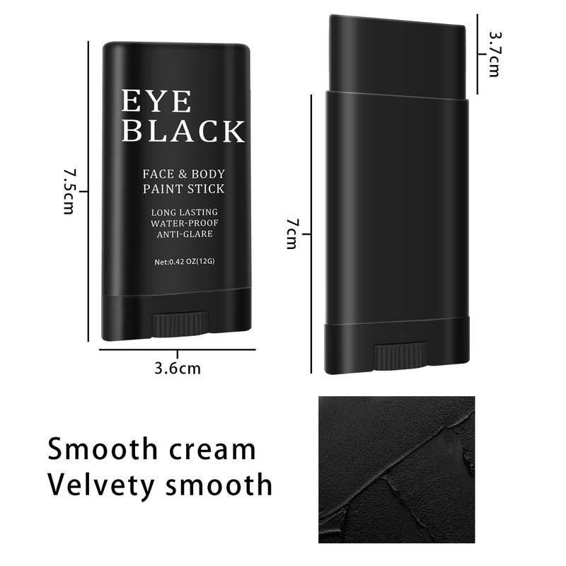 - Eye Black Stick - A super fun face painting for baseball softball sports and Cosplay paint. It smears smooth, easy to color and stay on well to provide the high pigment total full coverage with velvety feeling and intense colors payoff all day long.