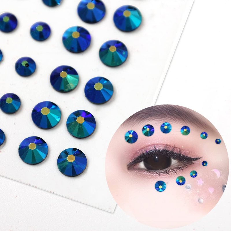 - 💎Face Jewels Tattoo: Come with 3 sheets of blue face gems of 3mm, 4mm, 5mm, and 6mm size, sufficient quantity, and various sizes to meet your various application needs.