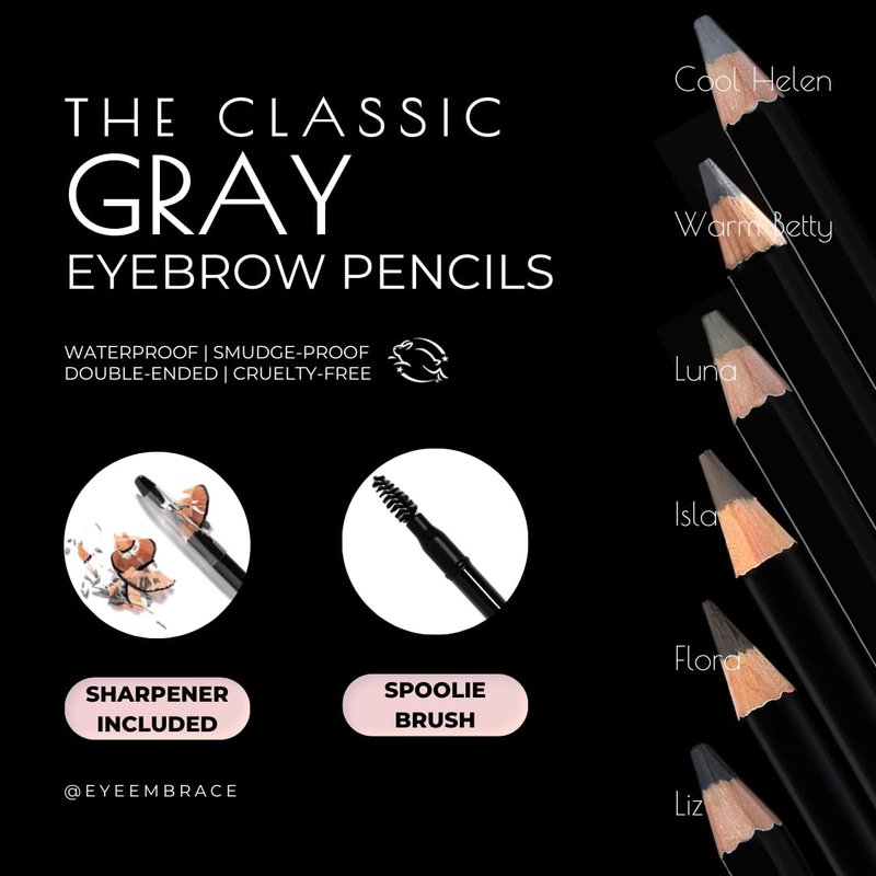 - True light gray pencil – Warm Betty for warm undertones. Ditch the dye and embrace your natural gray hair. These gray eyebrow pencils are perfect for those with gray hair, silver hair, or salt and pepper hair. Eye Embrace's exclusive gray brow colors are formulated to blend easily with your natural coloring.