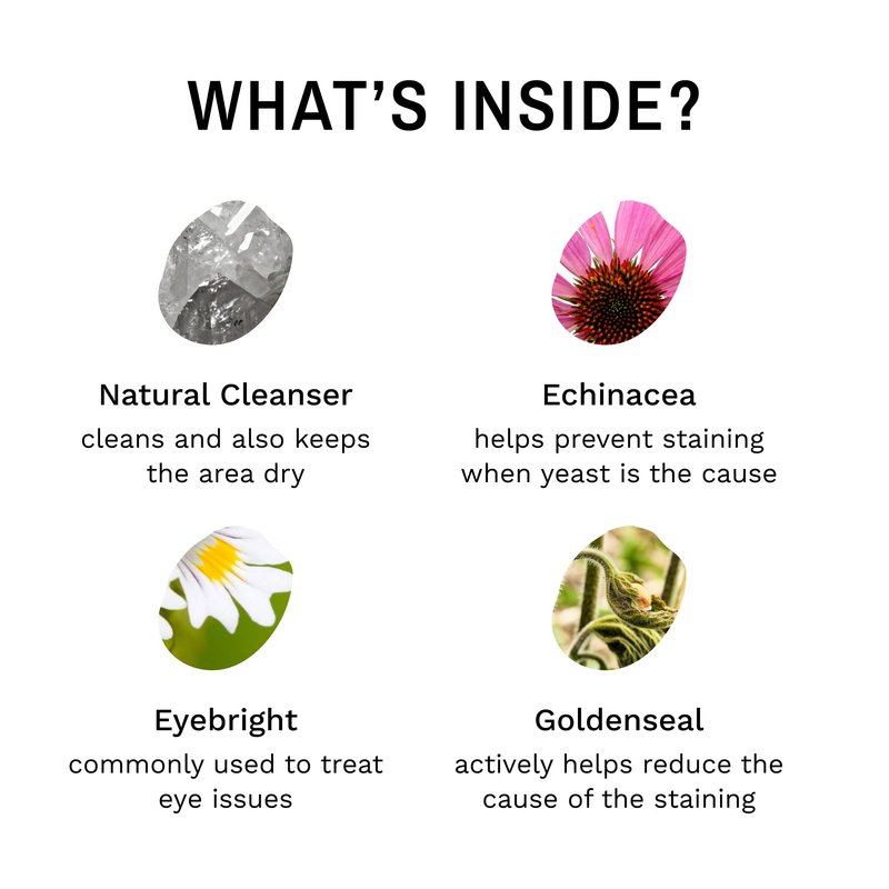 A simple, safe, and effective solution to help prevent tear stains. Eye Envy's tear stain removal system was designed to clean stains and prevent future ones by addressing the root of the problem. Eye Envy Tear Stain Remover Powder for Dogs and Cats is the second step in the tear stain removal process and is used directly after applying the Tear Stain Remover Solution or Wipes. Eye Envy Remover Powder is made of a drying agent to help repel stains as they fall and also keep the area dry. It is great for your Maltese, Persian, Shih Tzu, Himalayan, Havanese, Poodle, or other light/white coated furry friend and is used widely by grooming and dog show professionals. Safe enough for puppies and kittens over 6 weeks of age. Active ingredients: A natural cleanser, Goldenseal, Echinacea, and Eyebright.