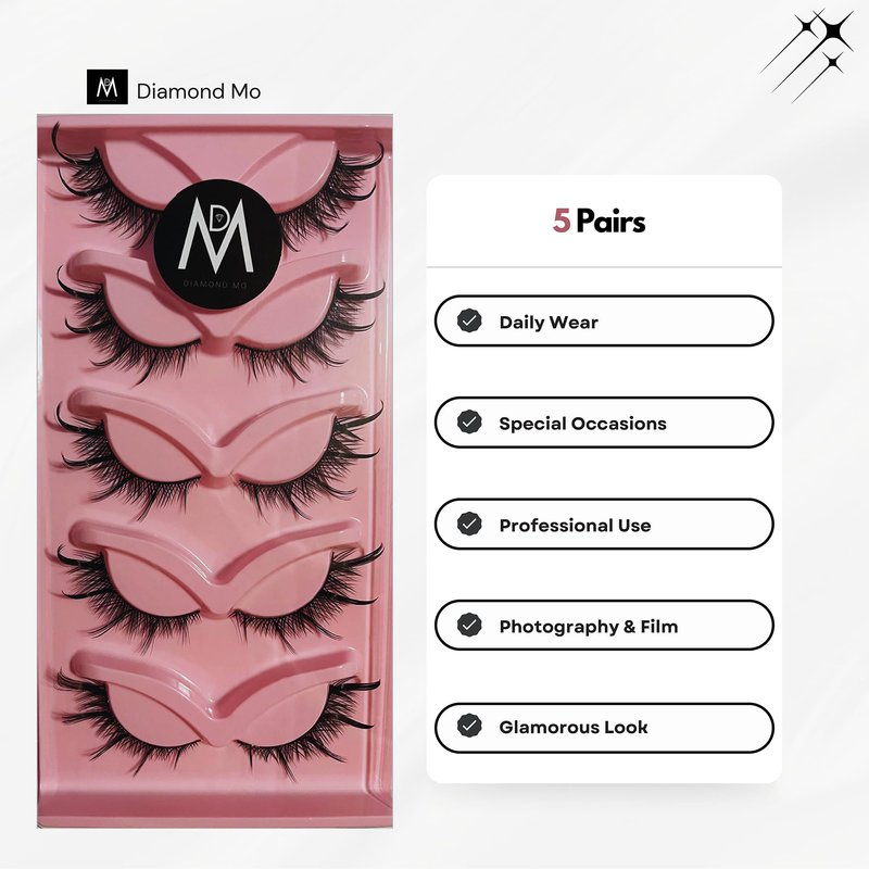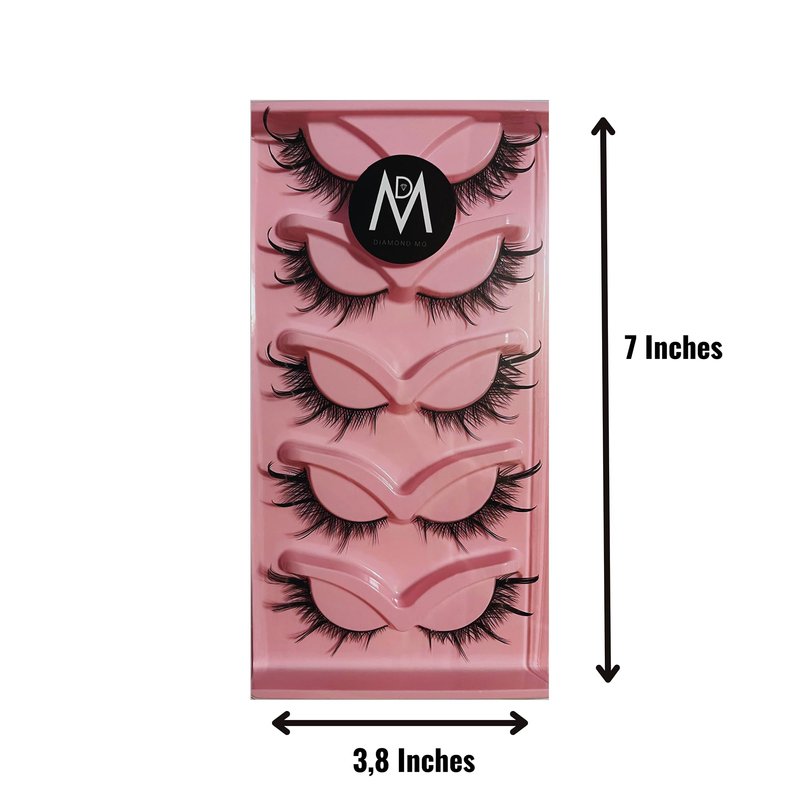 Unveil the secret to captivating eyes with the Diamond Mo New Cat Eye Lashes Mink Eyelashes. Crafted to perfection, these lashes offer a breathtakingly natural look with a stunning 3D curl and winged design that accentuates your eyes effortlessly. Imagine lashes that mimic the allure of a cat's gaze – elongated, thick, and beautifully messy at the ends for that irresistibly realistic touch. Made from premium mink, these lashes are incredibly soft, ensuring ultimate comfort while enhancing your natural beauty. Whether you're going for a chic daytime look or a glamorous evening ensemble, these versatile lashes are your perfect beauty companion. Each pack includes five pairs, providing you with multiple opportunities to dazzle and shine. Why You'll Love Them: Natural & Realistic: Achieve a seamless, natural look with a touch of drama. 3D Curl & Winged Design: Perfectly curled and winged for an eye-catching effect. Luxurious Mink: Soft, lightweight, and incredibly comfortable. Effortless Application: Easy to apply and remove, ideal for both beginners and pros. Value Pack: Five pairs for endless beauty possibilities. Transform your eyes and make a statement with the Diamond Mo New Cat Eye Lashes. Elevate your makeup game and captivate everyone with just one glance.