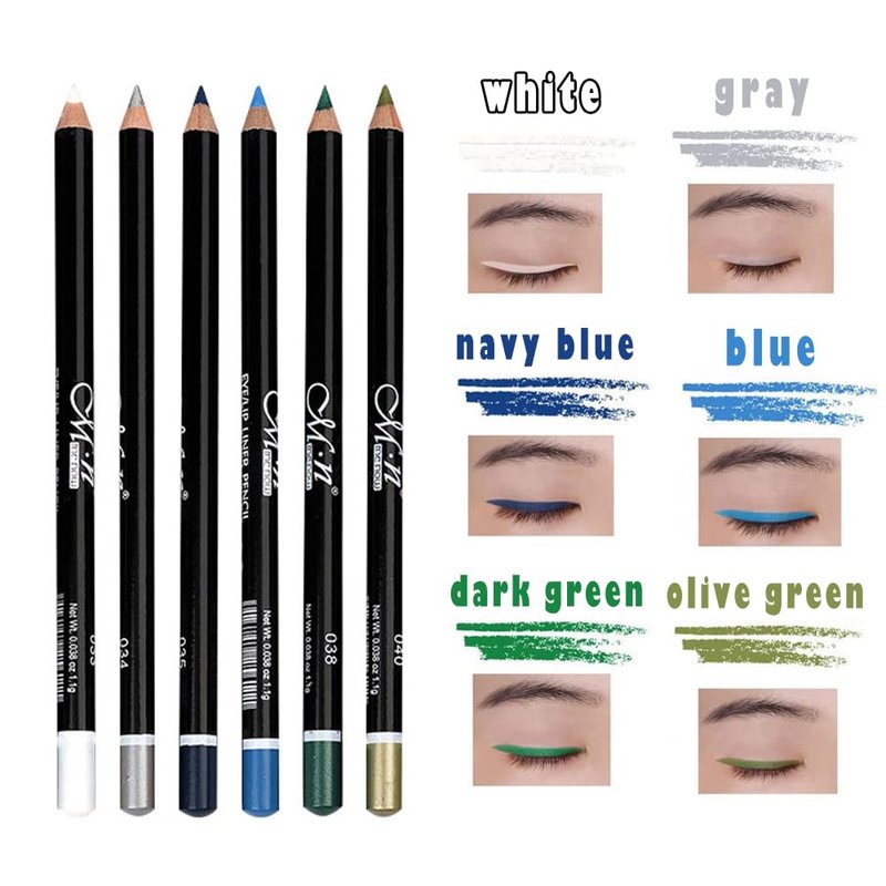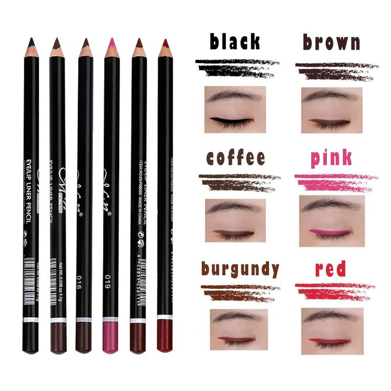 - 💟 【12 pure colors】 Wide variety of eyeliner shades: Black, brown, coffee, pink, wine red, red, white, gray, dark blue, blue, green and olive green. / Pencil long: 6 inches.