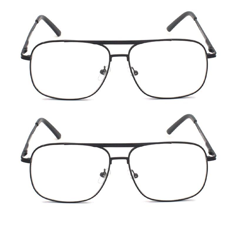 EYE ZOOM 2 Pack Metal Frame Square Aviator Style Geek Reading Glasses with Punch for Men (Black, Strength: +2.00)