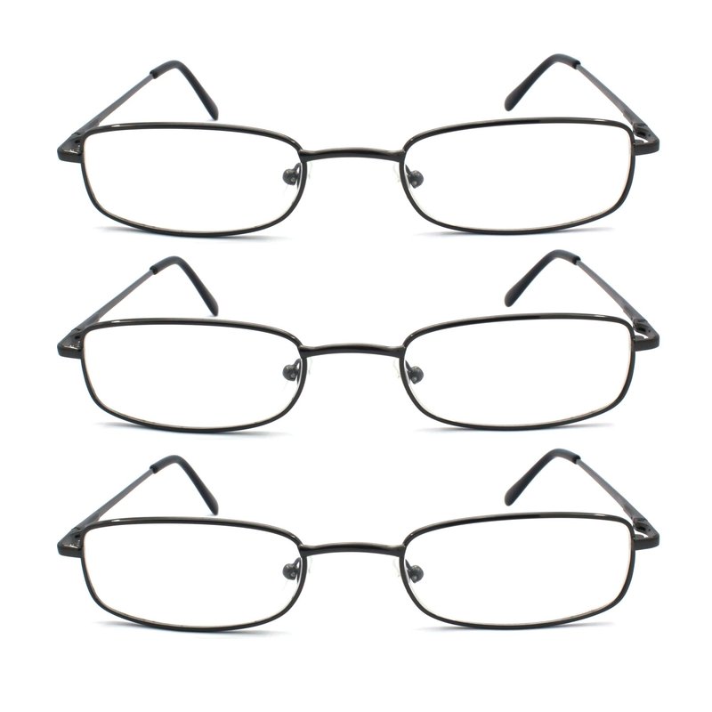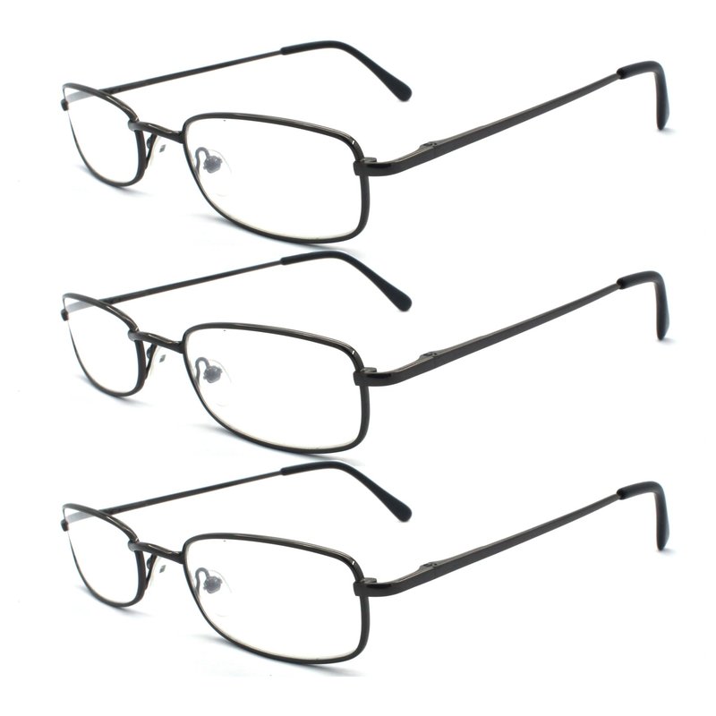 EYE ZOOM 3 Pack Classic Readers Rectangular Metal Reading Glasses for Men and Women, Gunmetal, +2.00 Strength